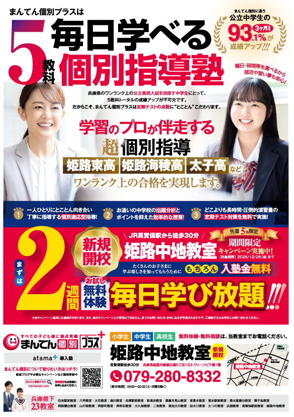 姫路中地教室新規開校!2週間学び放題キャンペーン実施中!
