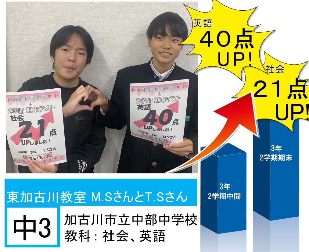 東加古川教室 点数アップ一覧 - 兵庫県の個別学習塾【まんてん個別指導塾】