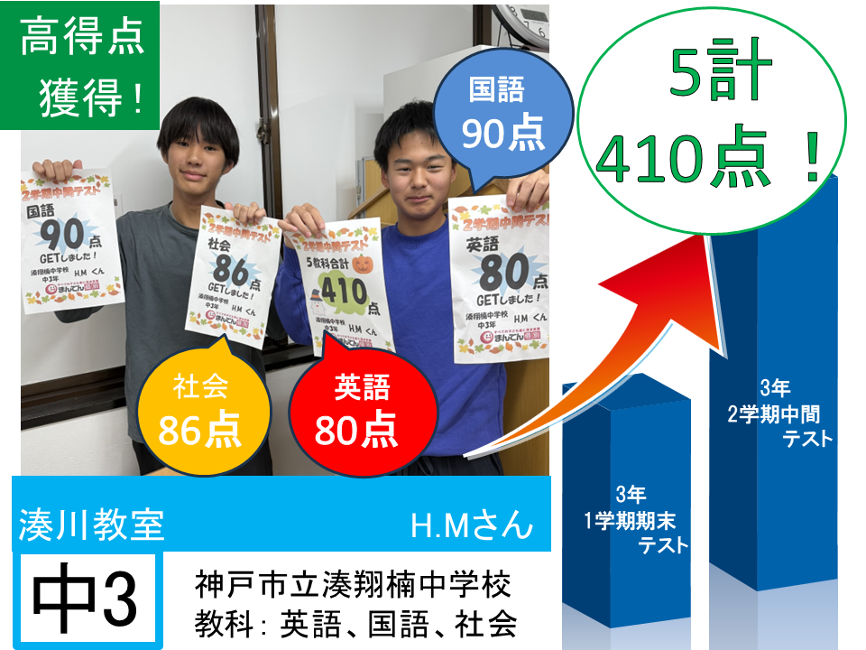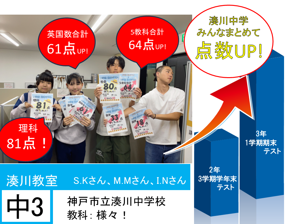 湊川教室 点数アップ一覧 - 兵庫県の個別学習塾【まんてん個別指導塾】